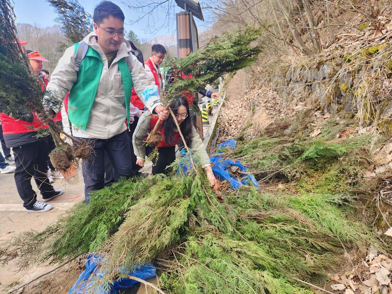 中午時(shí)分,當(dāng)植樹任務(wù)完成大家稍作休息后,陜西公眾信息產(chǎn)業(yè)有限公司50多名員工又馬不停蹄地拿上垃圾袋撿拾山里的垃圾,他們心懷對大自然的敬畏之心,手持勞動(dòng)工具和垃圾袋,分工協(xié)作、相互配合,井然有序地穿梭在山林里、河道旁,把游客遺落的垃圾撿拾干凈……“這些‘紅馬甲’志愿者們是公司團(tuán)委的青年科技工作者,平均年齡只有28歲,平日里他們是踐行網(wǎng)絡(luò)強(qiáng)國和數(shù)字中國、實(shí)現(xiàn)科技自立自強(qiáng)征程上的‘追夢人’,今天來到山野間,他們化身為捍衛(wèi)秦嶺生態(tài)的‘清道夫’,俯拾間‘清’出一片愜意的綠水青山,舉手間綻放一抹絢麗的青春色彩。”該公司團(tuán)委書記王世頂說。