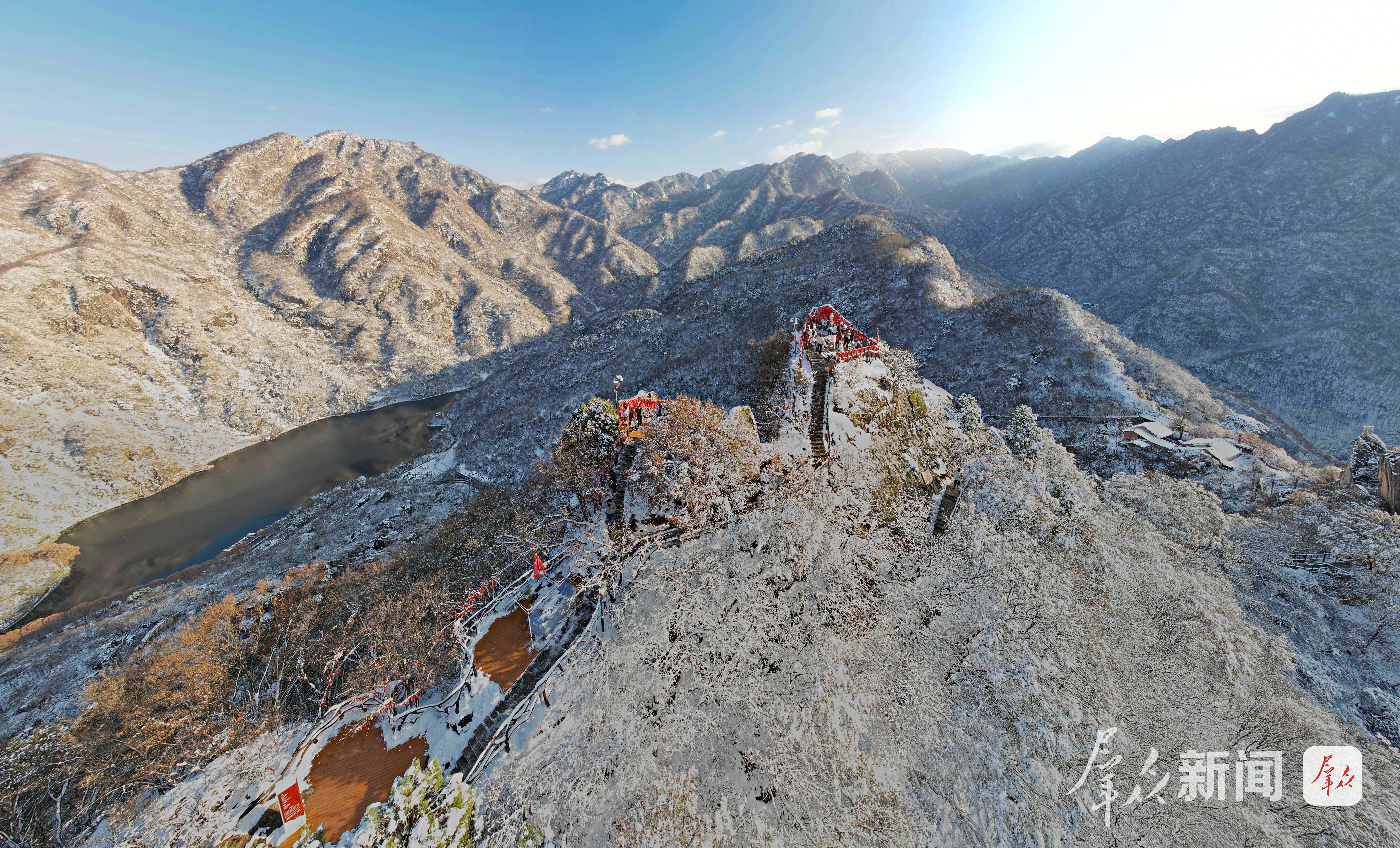 秦嶺迎來(lái)初冬第一場(chǎng)雪。11月17日,西安翠華山景區(qū)內(nèi),游人漫步于銀裝素裹的靜謐山間,宛若置身一幅徐徐展開的水墨畫卷,盡顯中式美學(xué)意境。(群眾新聞?dòng)浾?杜瑋)